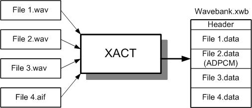 一个wave bank是包含多个wave文件的集合的文件, 扩展名.xwb