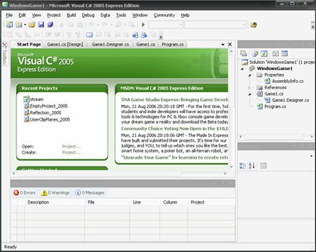 1. Visual Studio Express 2005(注意,当前的XNA GSE还无法集成到VS pro中)
