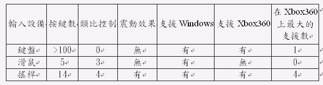 由表中得知Xbox360並沒有支援滑鼠,所以如果有在Windows使用到滑鼠在操控的話,在轉成Xbox360專案時會出現編譯錯誤,所以建議Windows和Xbox360兩個專案可以分開存放以方便修改各自所需的程式碼,因為Xbox360並沒有支援滑鼠這個輸入設備,至於鍵盤的話,Xbox360則是以USB外接鍵盤的方式來支援鍵盤的。