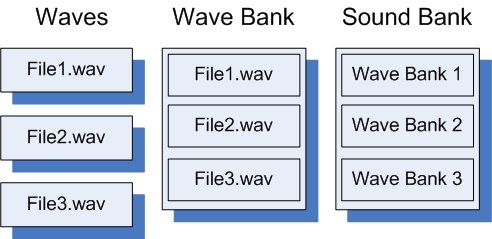 A sound bank is a logically grouped collection of sounds (wave banks) and cues.